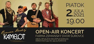 V piatok, 2. júla 2021 na Zemanskom dvore zahrá Roman Horký a Kamelot. Prineste si deky, hľadisko bude trávnatá plocha oddychového areálu. Vstup od 18.15 a po koncerte si môžete nechať zážitok doznieť pri pivku pod večernou oblohou. Lístky v cene 15 Eur kúpite v Trnave v reštaurácii Wetzlerov dom alebo v kaviarni Verdon, v Šúrovciach v reštaurácii Raisov dom, vo Vlčkovciach v reštaurácii Eso a cez víkend aj na farme.